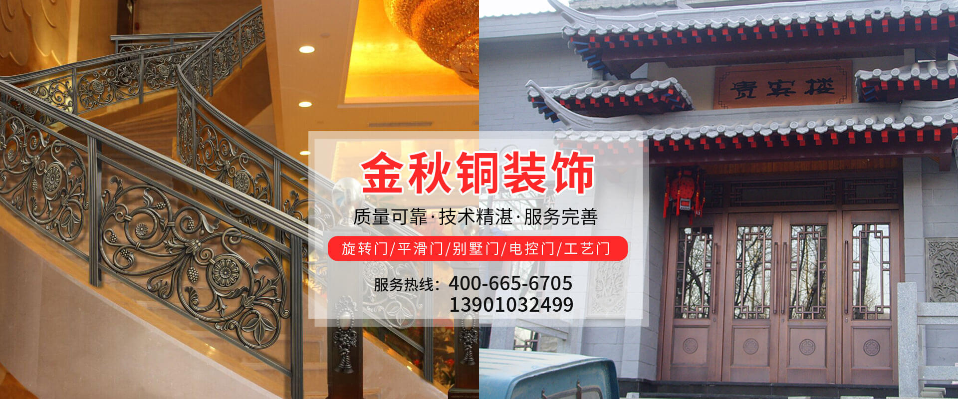 北京金秋銅裝飾材料有限公司是專業(yè)生產(chǎn)銅裝飾材料及設(shè)計(jì)、開(kāi)發(fā)、制造、施工、售后服務(wù)為一體的大型綜合企業(yè)??沙薪咏ㄖ~裝飾工程及五星級(jí)酒店、別墅、博物館、樓樘管所等高檔銅裝飾項(xiàng)目;生產(chǎn)各種規(guī)格的旋轉(zhuǎn)門(mén)、平滑門(mén)、別墅門(mén)、電控門(mén)、工藝門(mén)、旋轉(zhuǎn)護(hù)欄、屋頂銅飾防水瓦、浮雕壁畫(huà)......
